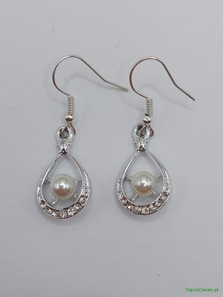 Kolczyki łezki z cyrkoniami i perłą