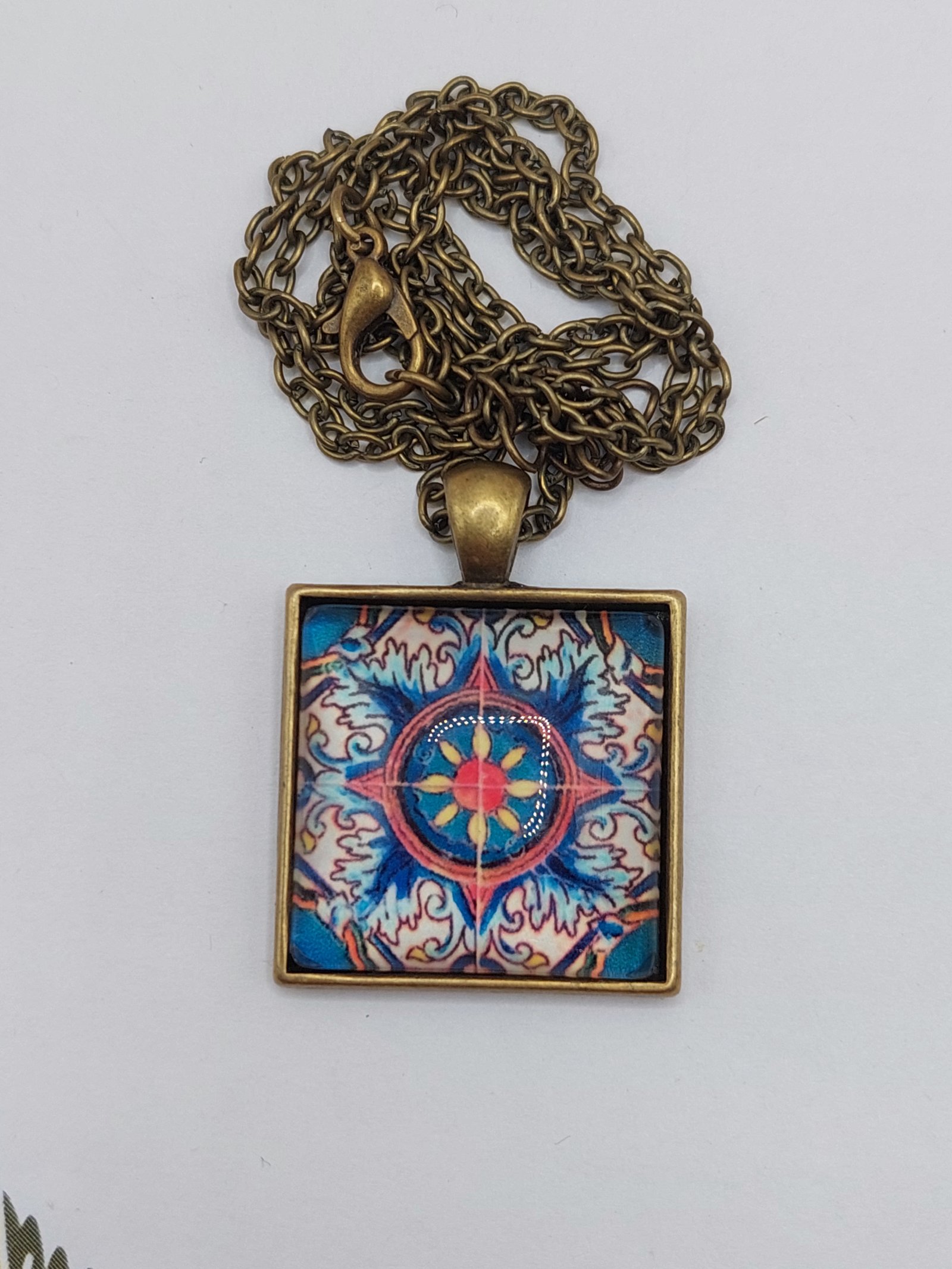 Naszyjnik kwadrat z kaboszonem mandala 2