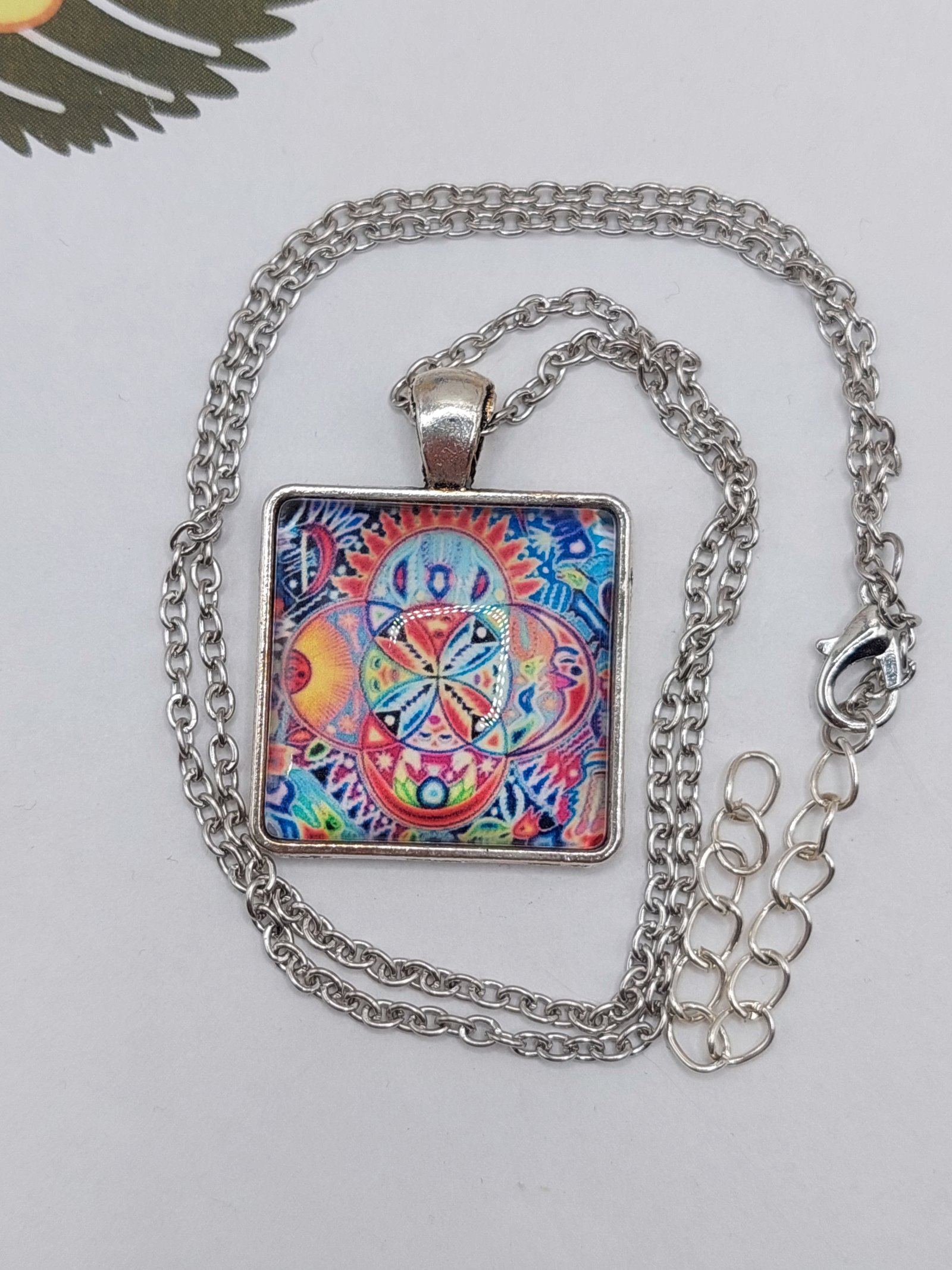 Naszyjnik kwadrat z kaboszonem mandala 9