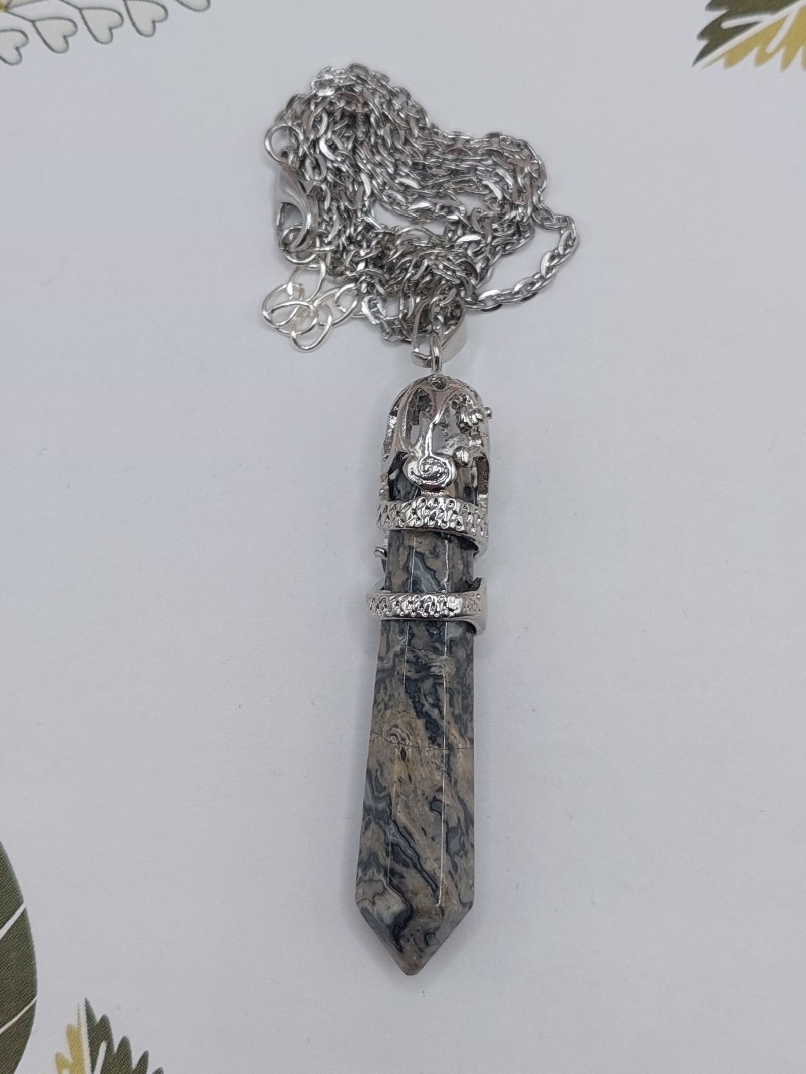 Naszyjnik grot w okuciu smok jaspis