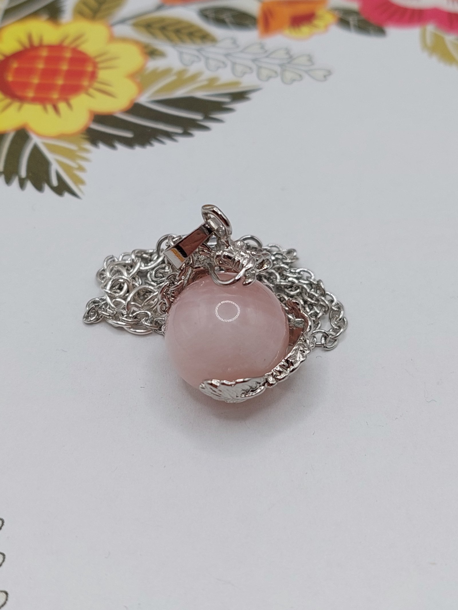 Naszyjnik kula ze smokiem kwarc różowy