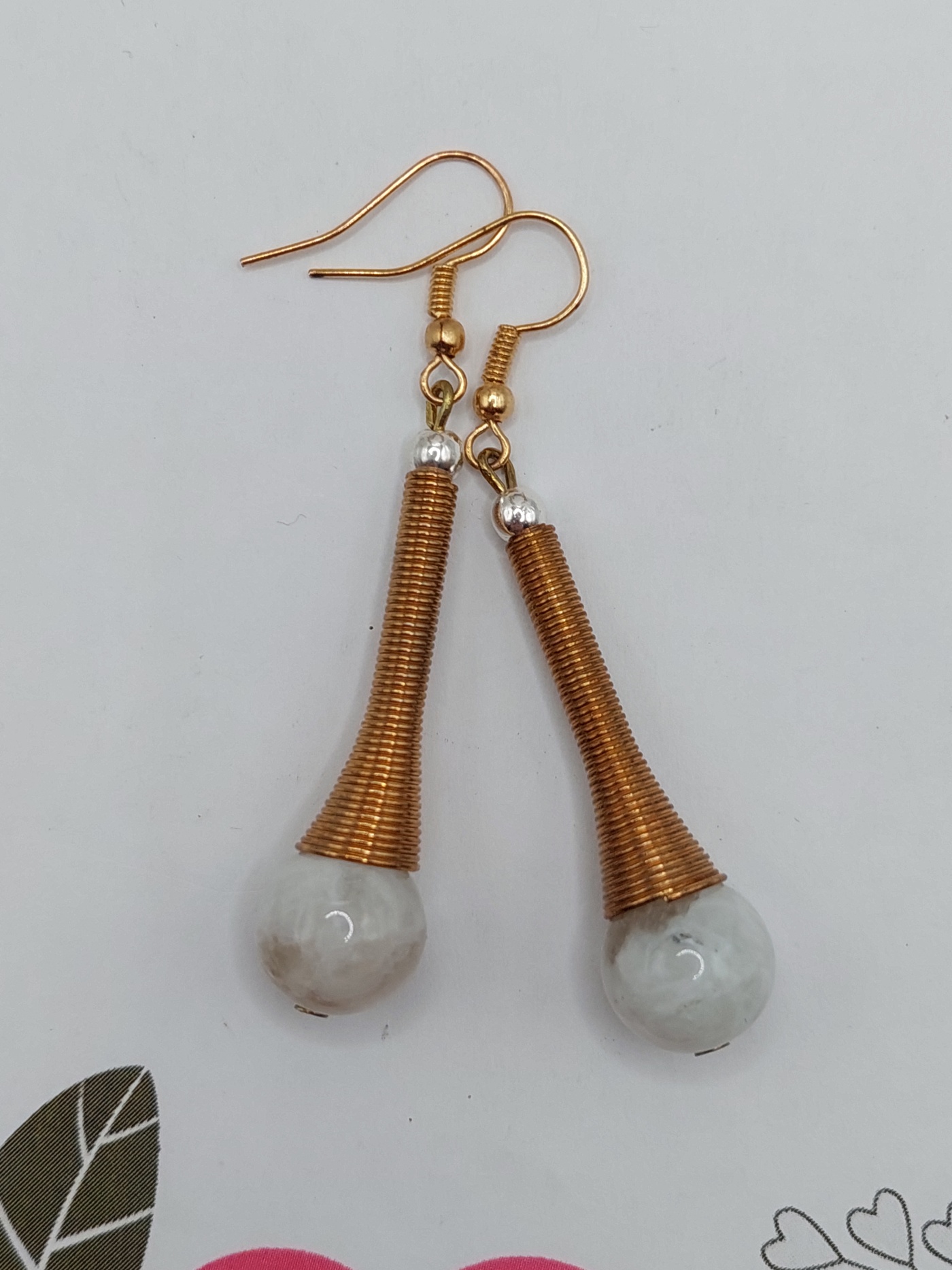 Kolczyki sprężynowe wieże z hematytem i kamieniem księżycowym