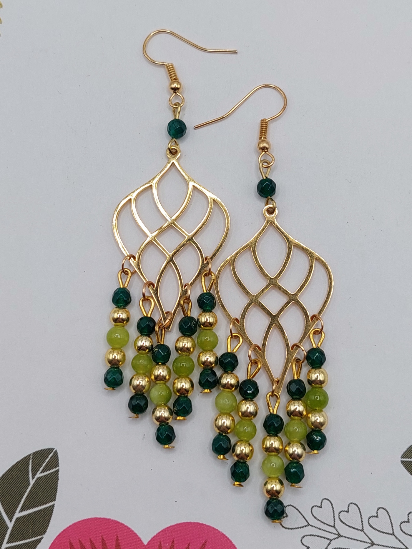 Orientalne kolczyki z jadeitem i hematytem zielone