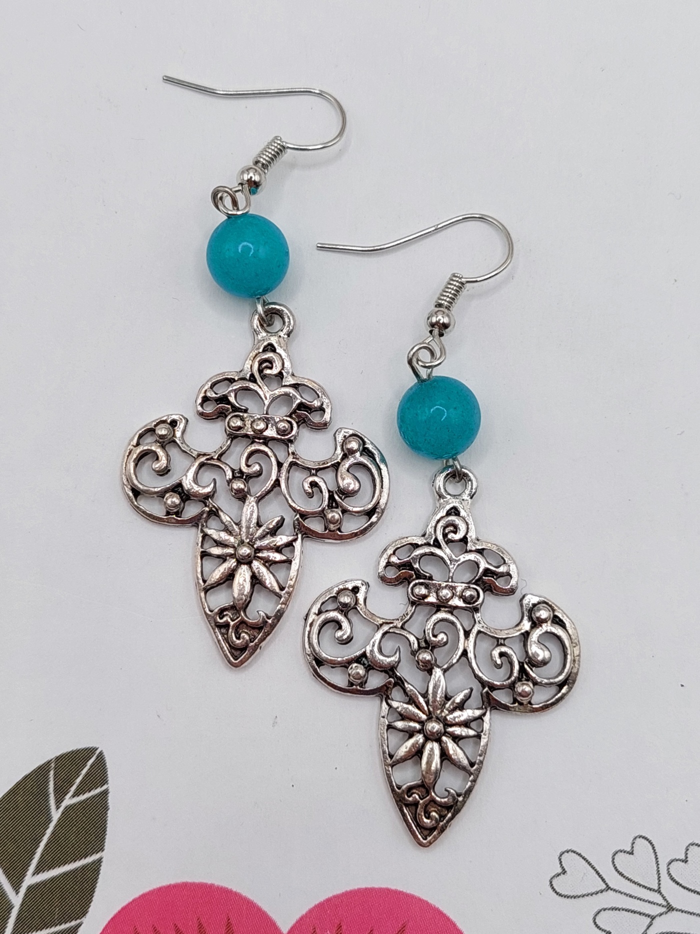 Kolczyki fleur de lis z kwarcem