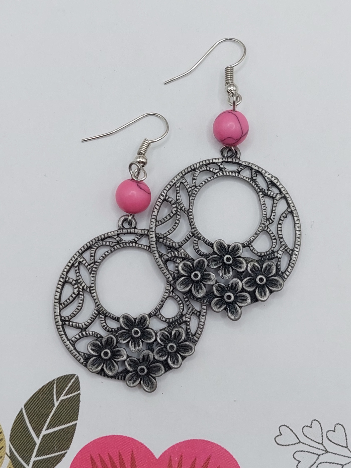 Kolczyki kółka ażurowe z kwiatkami z howlitem