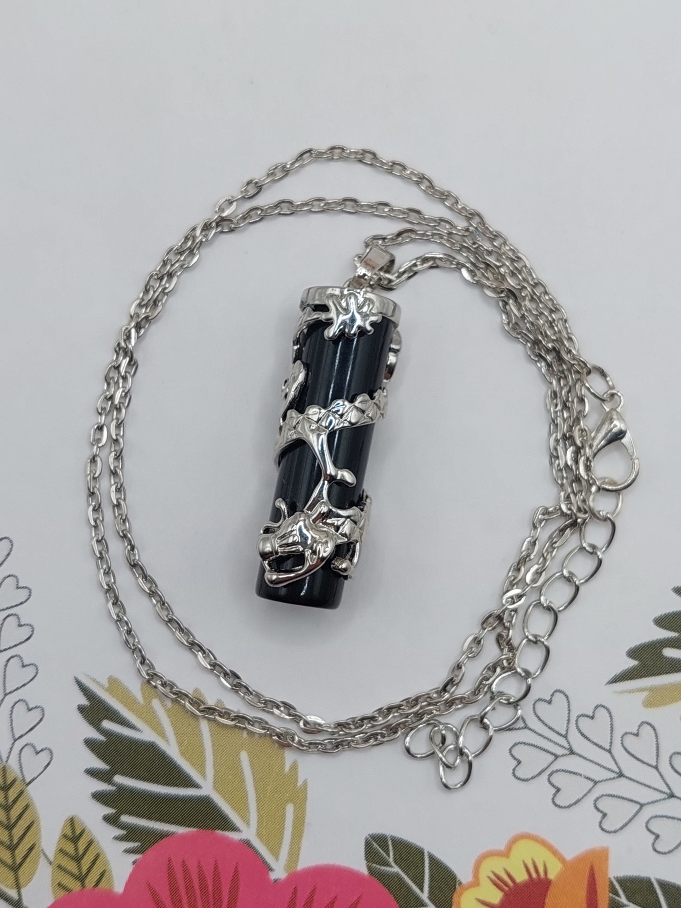 Naszyjnik tuba w okuciu smok czarny turmalin