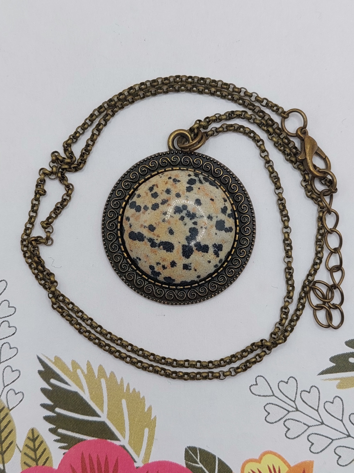 Naszyjnik medalion z jaspisem dalmatyńskim