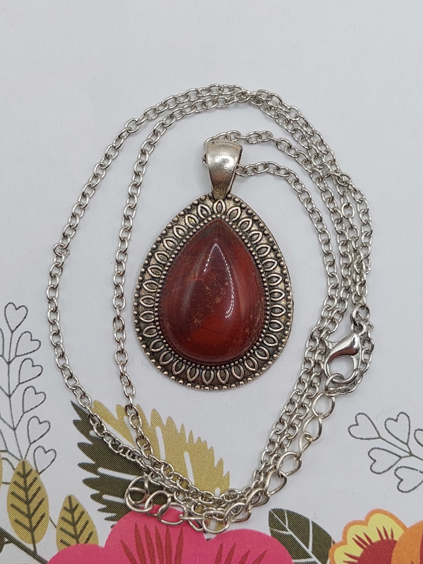 Naszyjnik łza z jaspisem czerwonym królewskim