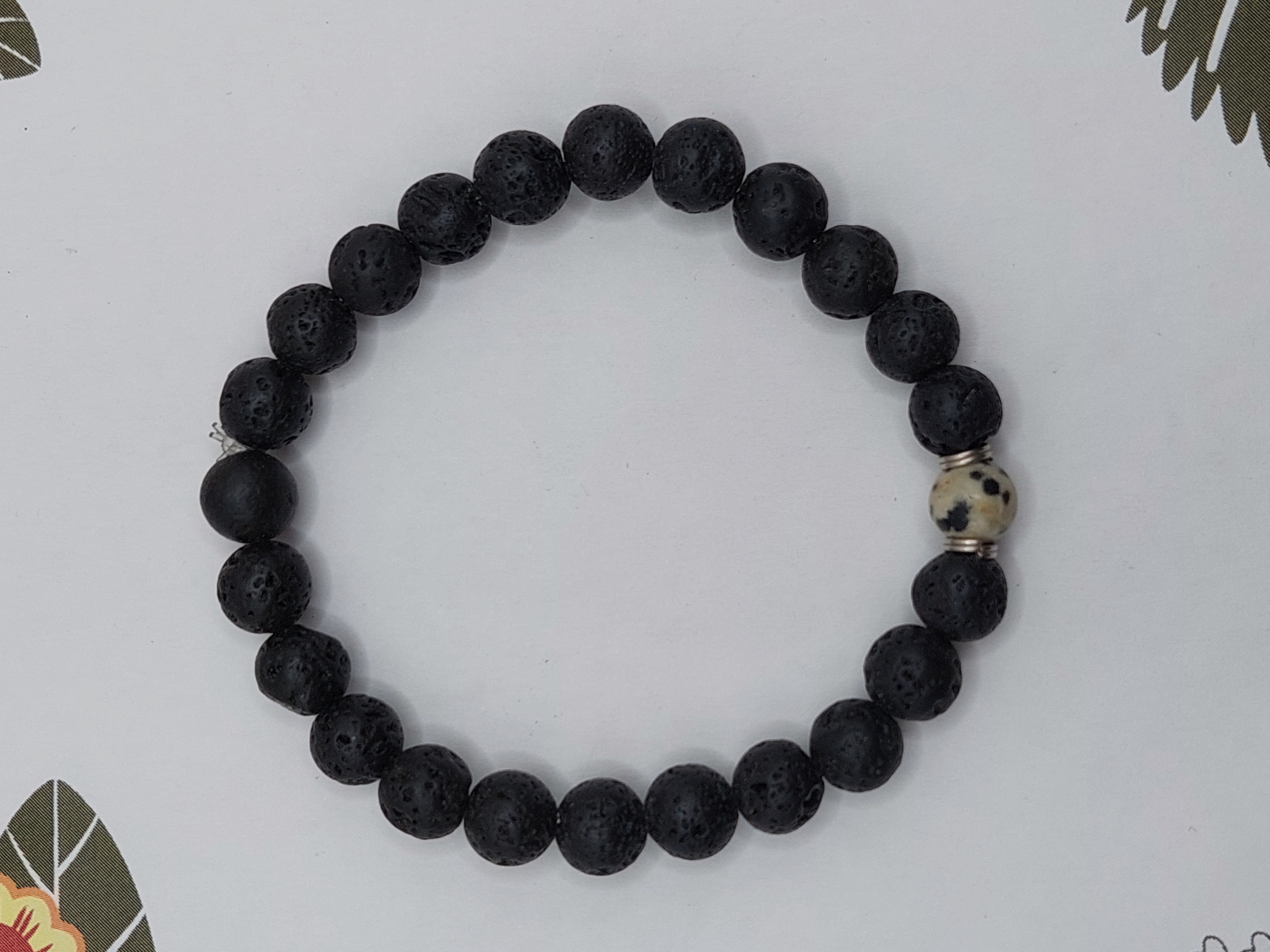 Bransoletka męska z lawy wulkanicznej i jaspisu dalmatyńskiego