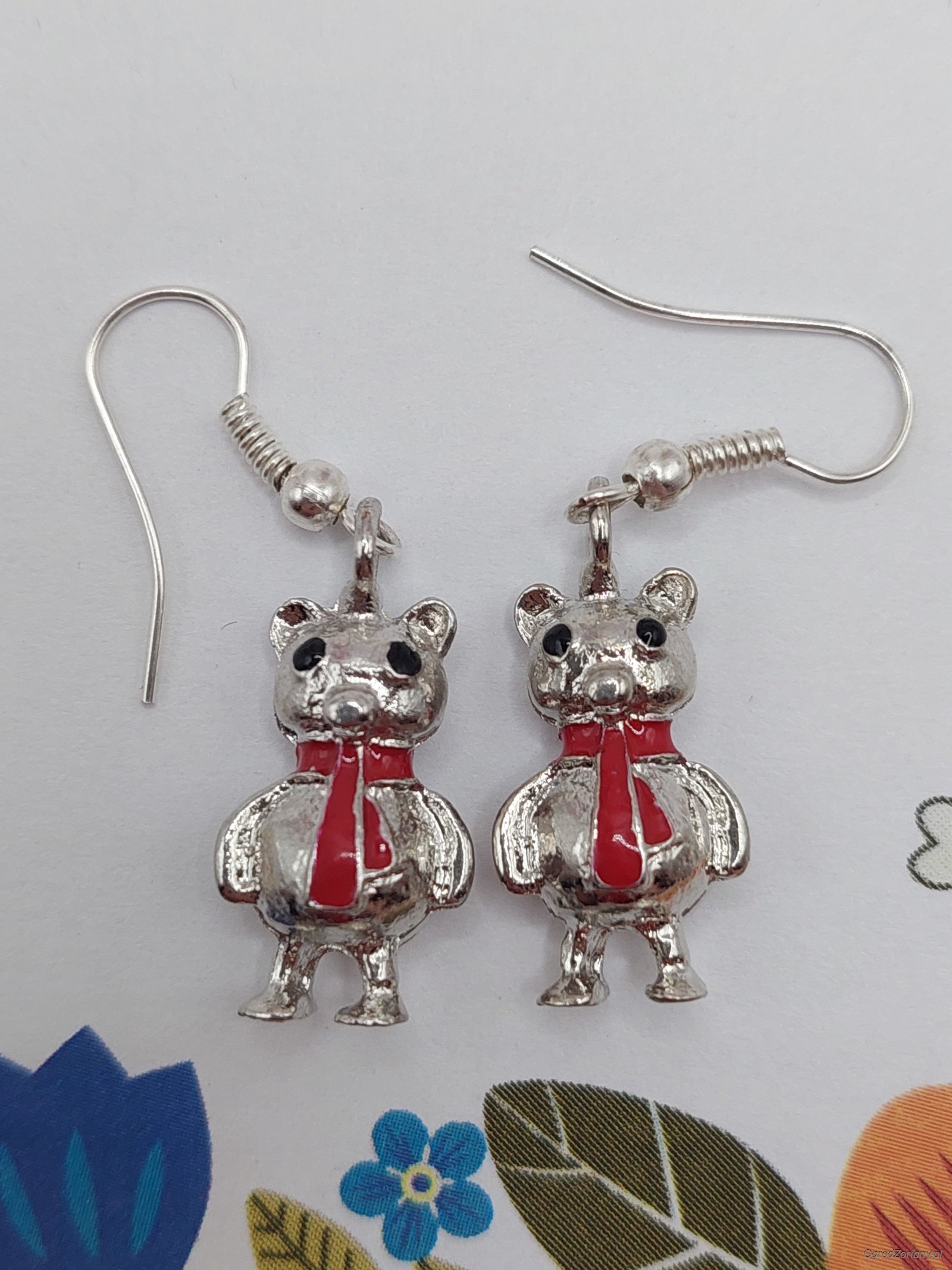 Kolczyki w formie słodkich misiów 3D. Misie odlane w metalu, częściowo emaliowane. Całość niewielka i urocza. Wszystkie elementy metalowe - antyalergiczne.