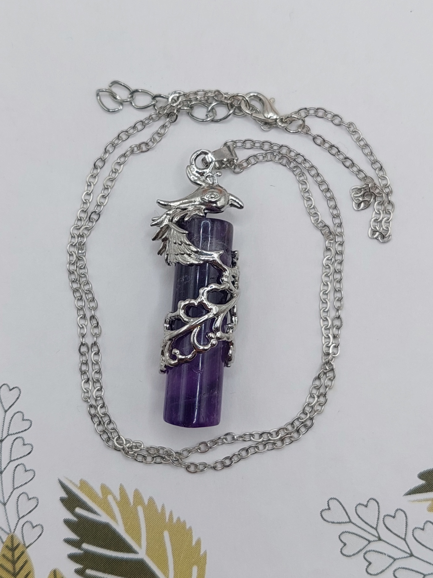 Naszyjnik kolumna w okuciu feniks ametyst