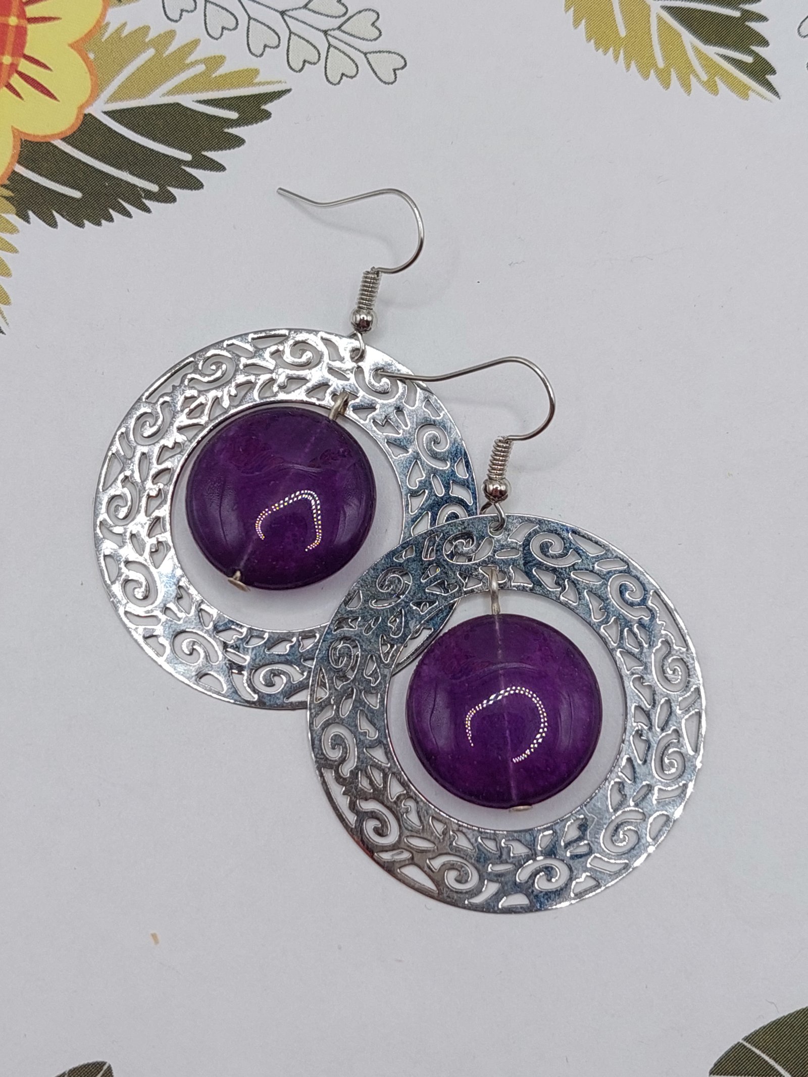 Kolczyki ażurowe koła z jadeitem