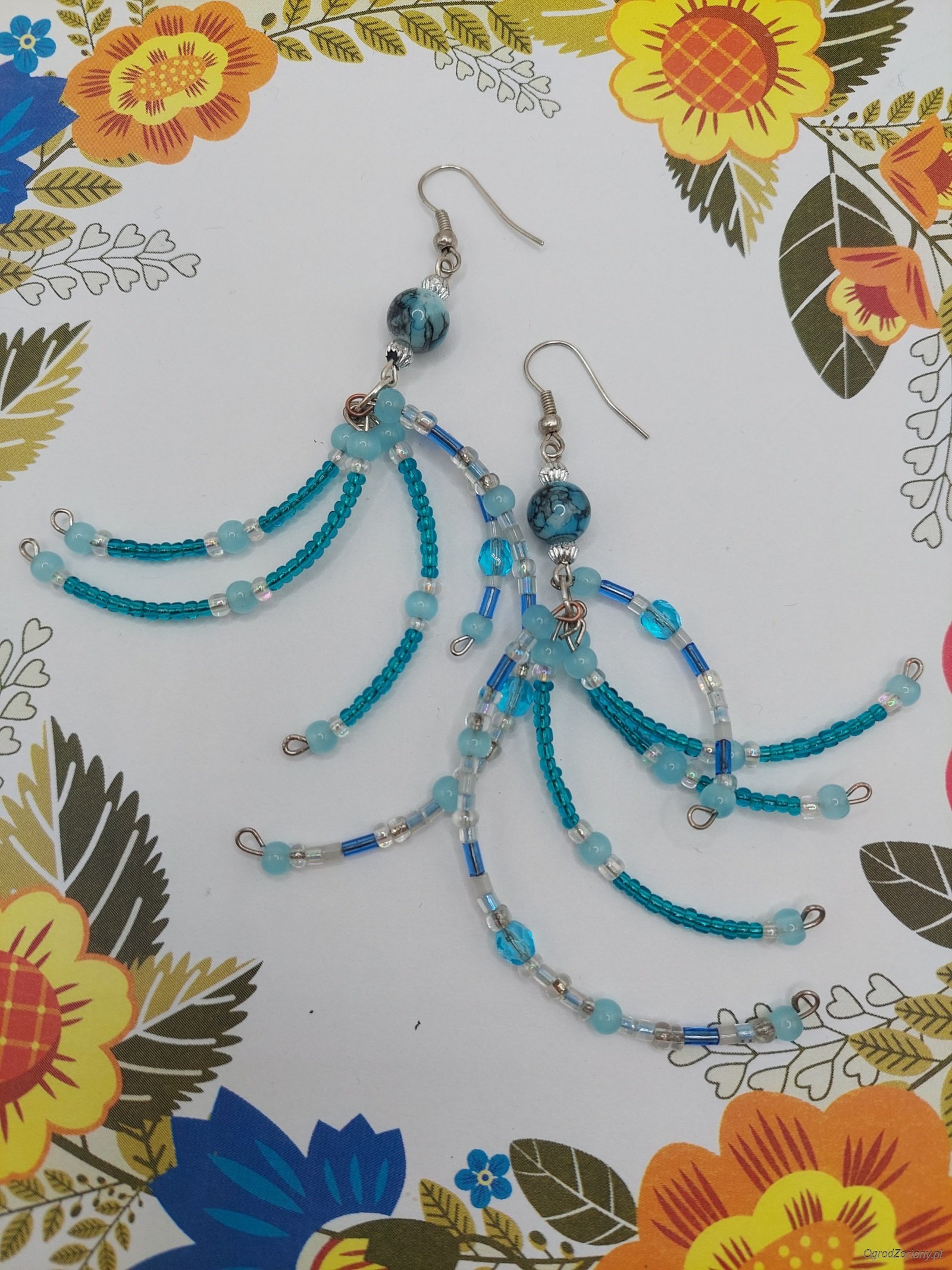 Fantazyjne, etniczne kolczyki z drobnych koralików szklanych i akrylowych oraz malowanych szklanych kul osadzonych na łukach z drutu pamięciowego. Wesołe i odważne. Sprawdzą się w stylizacjach letnich i folkowych. Elementy metalowe - antyalergiczne.