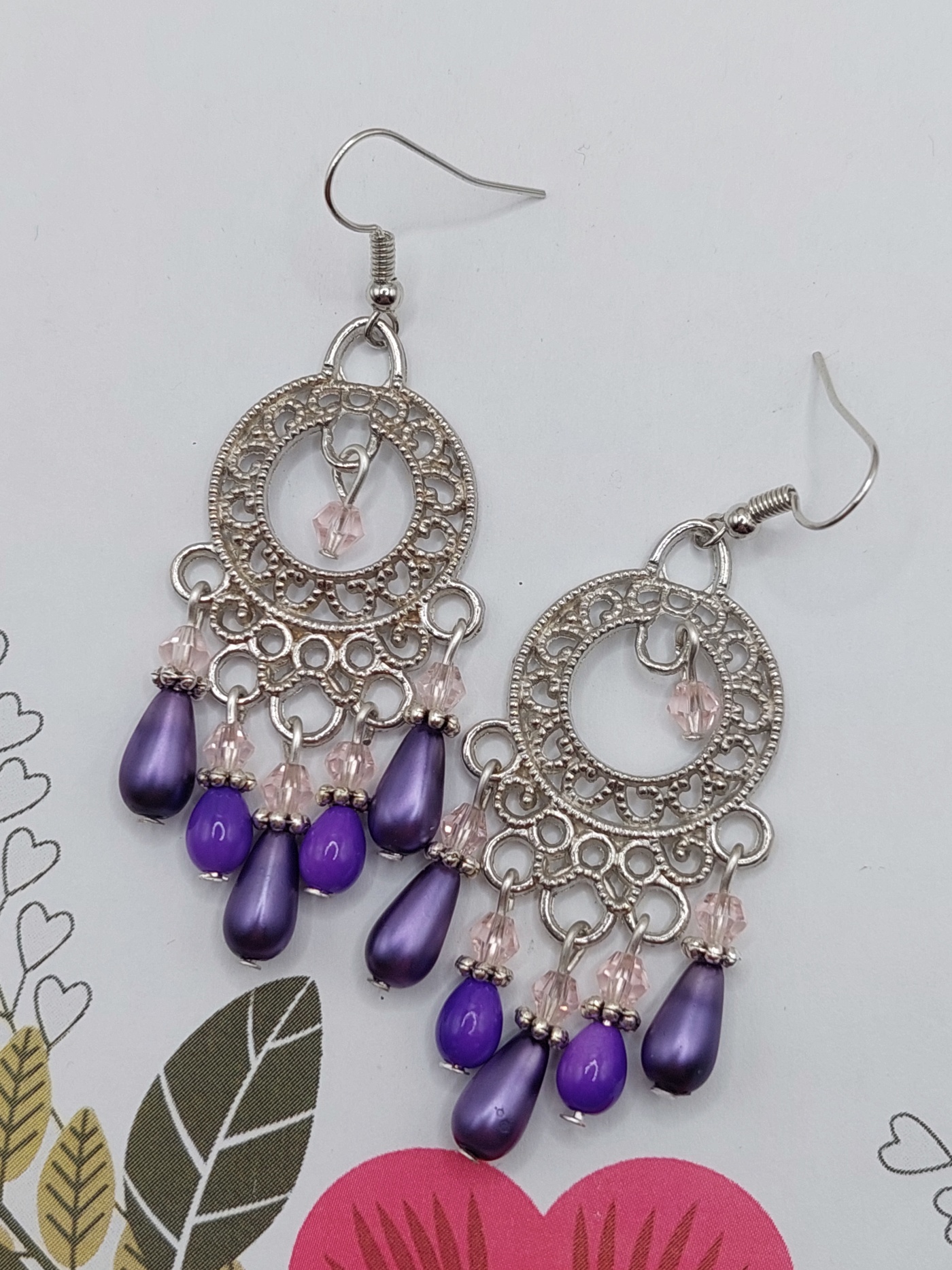 Orientalne kolczyki z fioletowymi kroplami