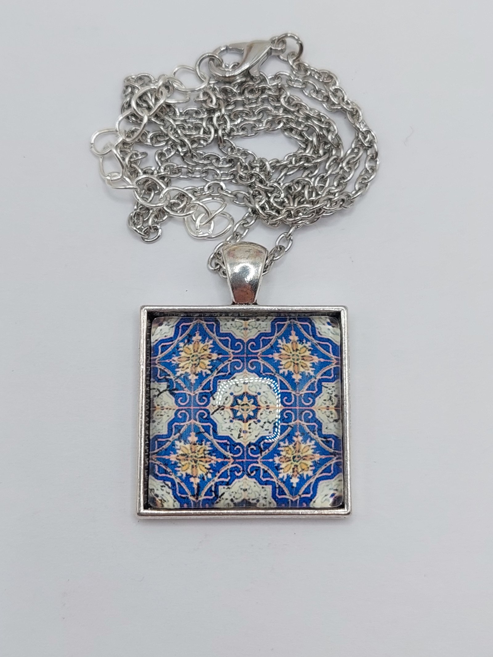 Naszyjnik kwadrat z kaboszonem mandala 7