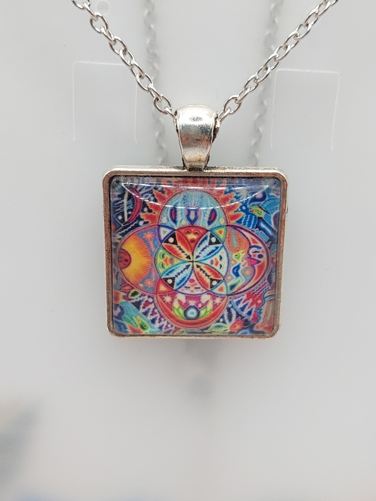 Naszyjnik kwadrat z kaboszonem mandala 9