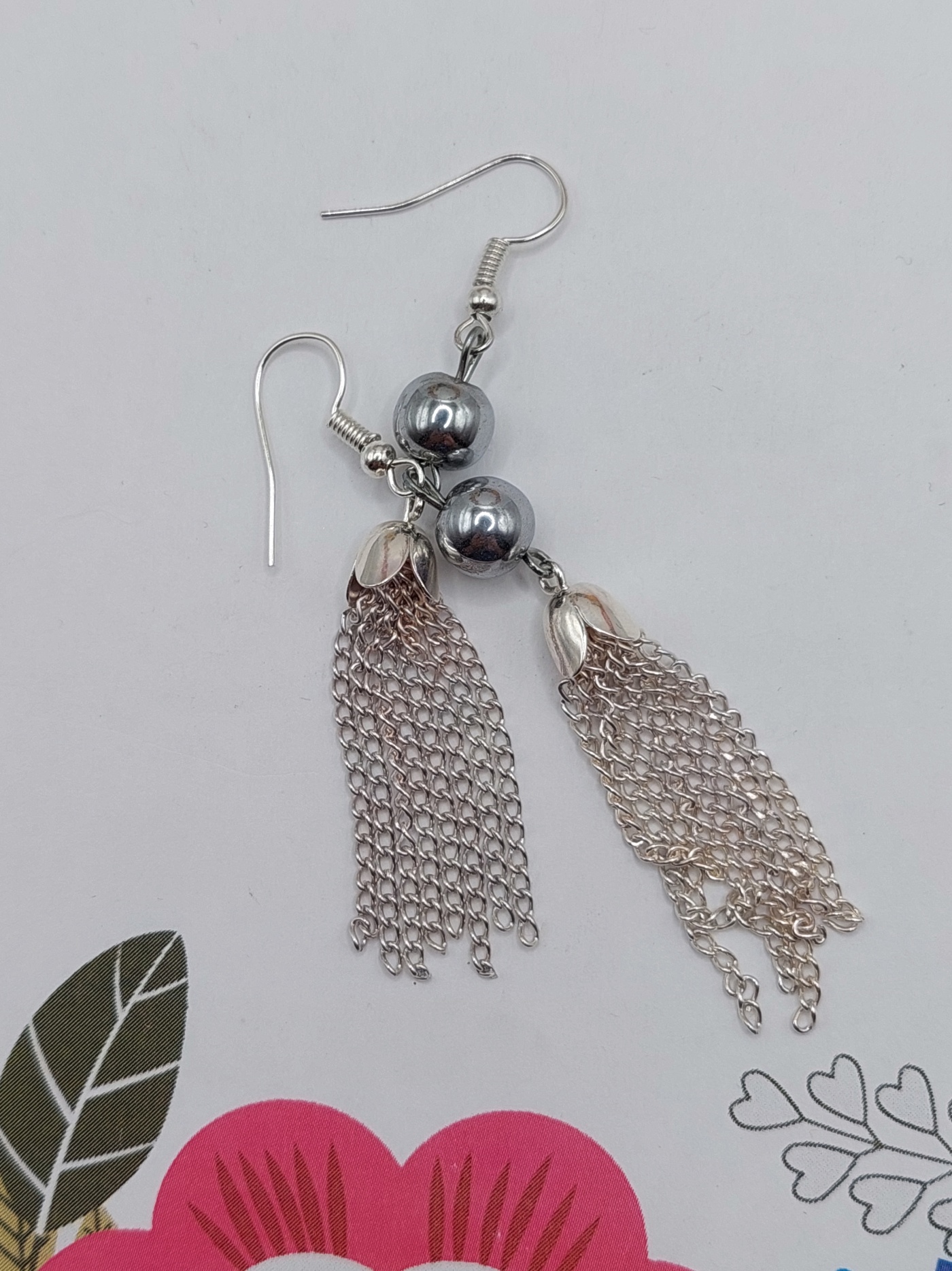 Kolczyki z chwościkami z łańcuszków i hematytem