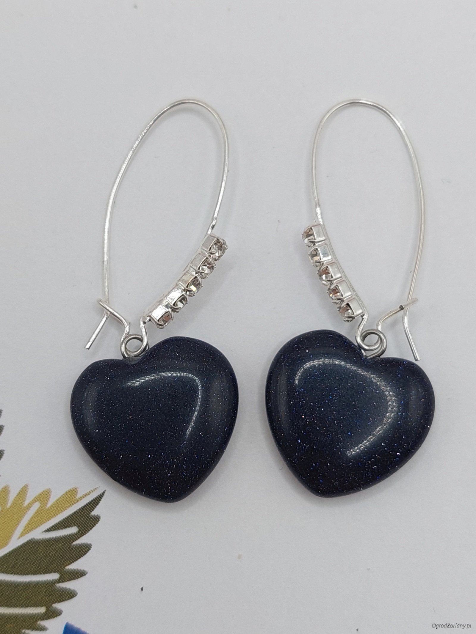 Eleganckie i subtelne kolczyki serca na długim ozdobnym biglu. Serduszka wykonane są z kamienia Noc Kairu, bigle wysadzane drobnymi kryształkami - antyalergiczne. Piękne i niezastąpione jako dodatek do kreacji wieczorowych. Doskonałe na prezent.