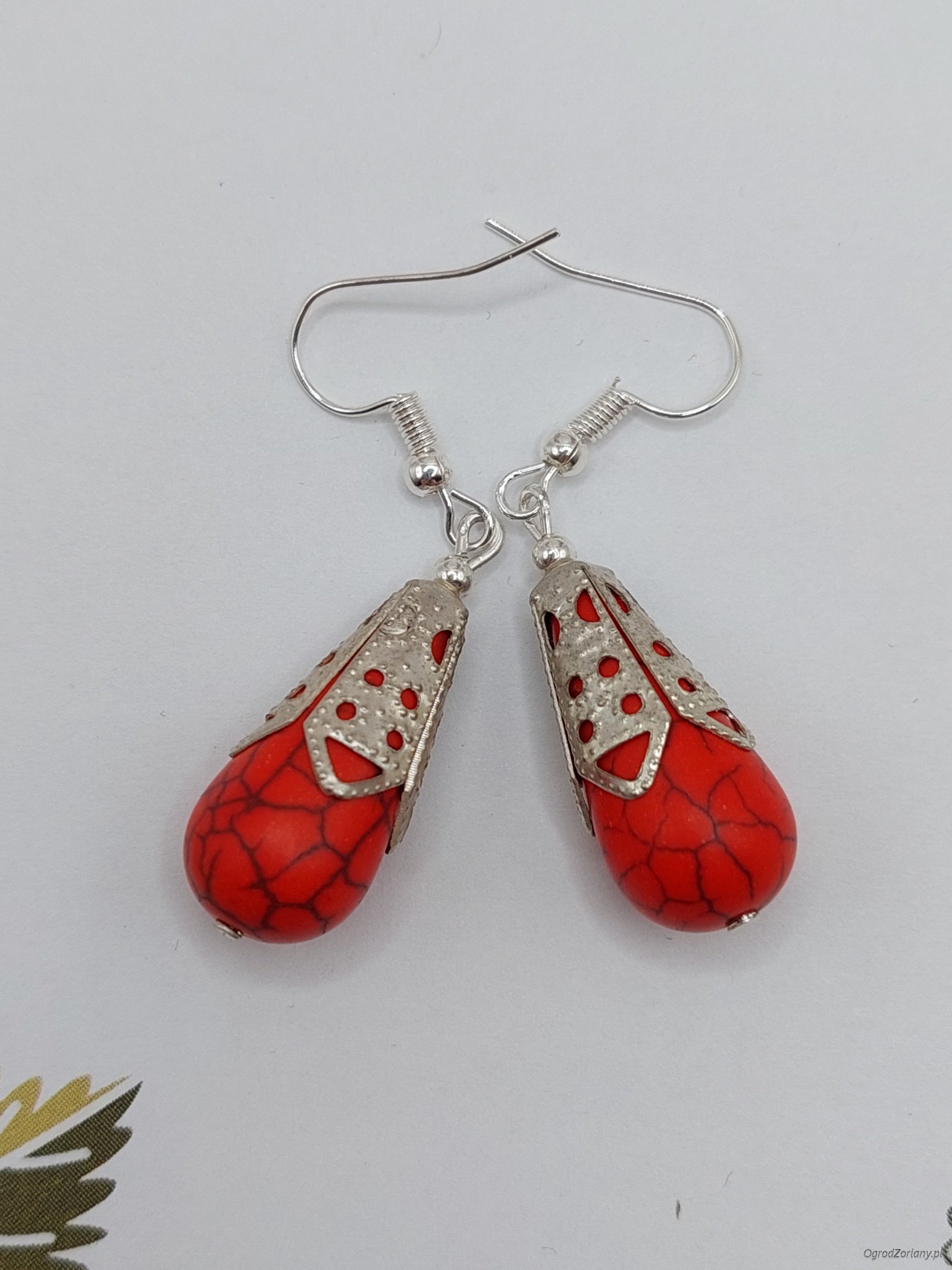 Gustowne kolczyki wykonane z dużych kropel howlitu osadzonych w ażurowych wieżach. Kolczyki subtelne i eleganckie. Wszystkie elementy metalowe - antyalergiczne.