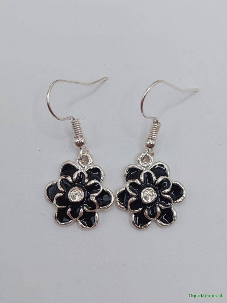 Kolczyki emaliowane kwiatki czarne