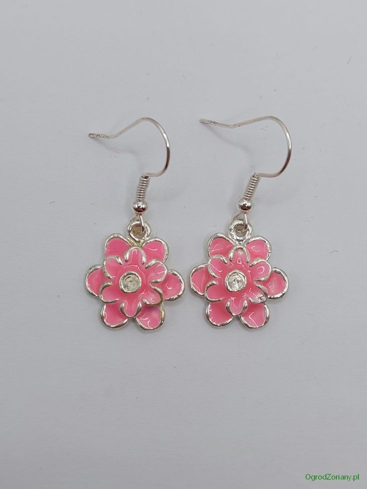 Kolczyki emaliowane kwiatki różowe